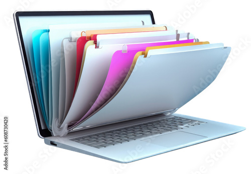 File folder on laptop screen on PNG transparent background, data storage concept. Generative AI