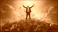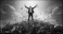 Fototapeta - The successful man in a victory pose at the top of golden mountain