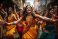 Fototapeta - Indian women dancing on the streets in traditional dresses