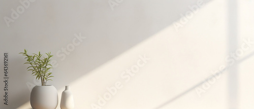 Fototapeta - Biała gładka ściana - tło, mockup do prezentacji produktu, obrazu na ścianie. Cień, padające światło.