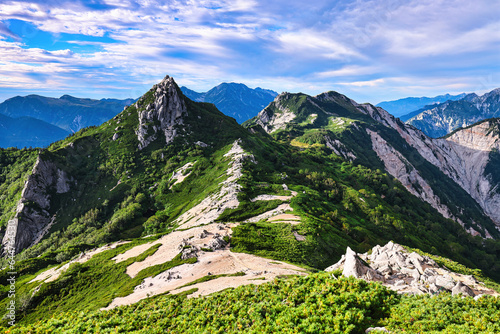 Fototapeta - 北アルプスの烏帽子岳と南沢岳