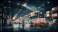 Long exposure of modern warehouse interior with motion blur of workers and machinery