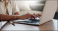 >Plakat>Desk, hands typing and laptop in home for remote work, internet search or blog. Closeup, computer and woman on keyboard at table in living room, writing email and communication on digital technology