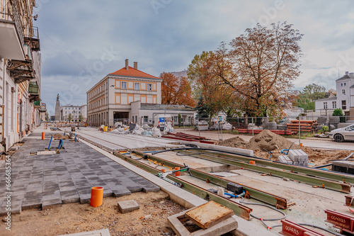 Fototapeta - Układanie nowego torowiska tramwajowego