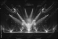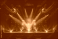 Fototapeta - Illuminated spotlights on a concert stage in a dark room.