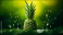 Fototapeta - Ananas zielony, soczysty, piękny, świeży na zielonym tle z kroplami wody.