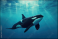 a orca fish or killer whale swimming on under water of sea