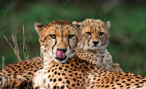 Fototapeta - Female cheetah and her cub, Zimanga Private Game Reserve, KwaZulu Natal.