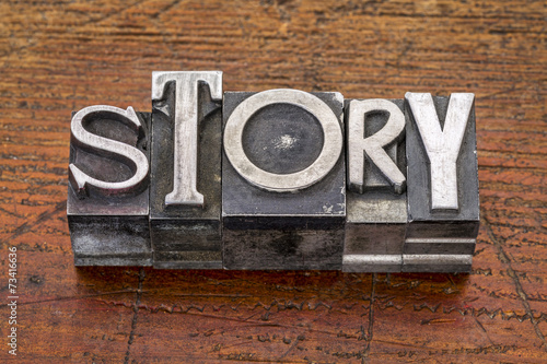 Fototapeta - story word in metal type