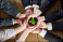 手のひらを重ねるビジネスパーソン