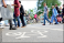 Fototapeta - Mixed crowd of pedestrians crossing street and bike lane