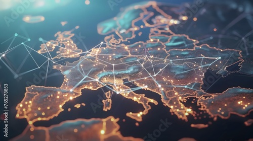 Digitales Netzwerk über Europa, Leuchtende Metropolen, Konzept digital vernetzter Kontinent