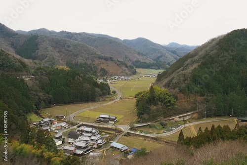 Fototapeta - 山に囲まれた山間部にある田舎の風景は兵庫県上郡町