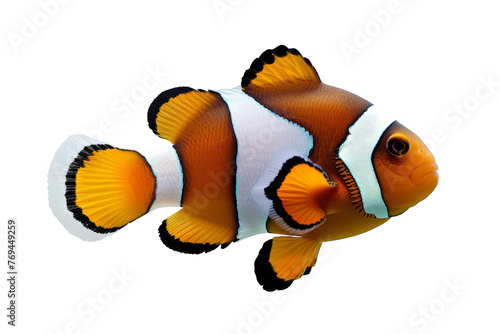 Orange clown fish (Amphiprion percula) in aquarium swiming in sea anemones. swiming clown fish isolated on white