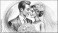 Portret młodej pary. Rysunek, szkic, akwarela ze złotymi elementami. Zaproszenie lub kartka ślubna