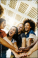 >Plakat>Vertical photo of multiracial happy friends with hands in stack. Multi-ethnic diverse group of college students joining their hands. Stacking hand concept, community, unity and teamwork concept