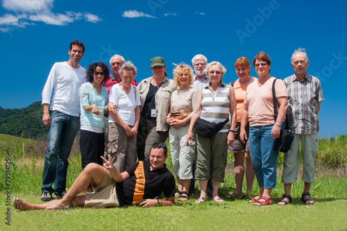 Fototapeta - Fröhliche Reisegruppe - jung und alt
