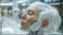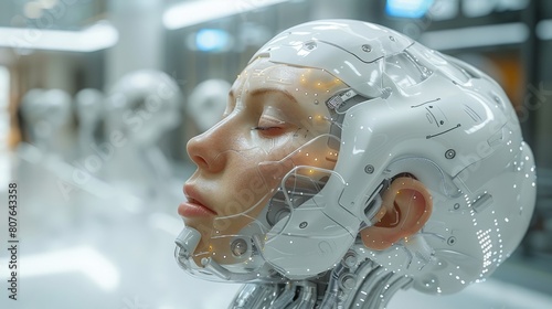 The creation of a digital interface 3D rendering is made possible by a cyborg head using artificial intelligence
