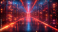 Fototapeta - The corridor of a working data center with rack servers and supercomputers with an Internet connection visualisation projection