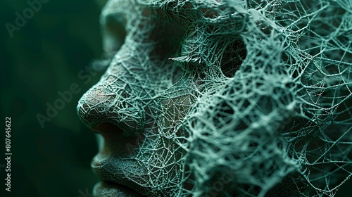 A digital human face in the form of artificial intelligence. A concept of big data or cyber security illustrated in 3D.