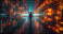 A businessman and a robot in the digital world. A big data technology concept of the digital world with a cyber space background.