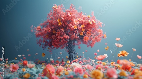 >Plakat>The human brain tree with flowers represents self-care and mental health, positive thinking, to develop a creative mind and to develop generative AI
