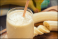 Fototapeta - Fresh made Banana smoothie on wooden background