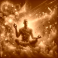 Fototapeta - tętniący życiem, wymarzony krajobraz z pływającą wyspą i kaskadowymi wodospadami otoczonymi wirującymi chmurami . Człowiek podczas medytacji.