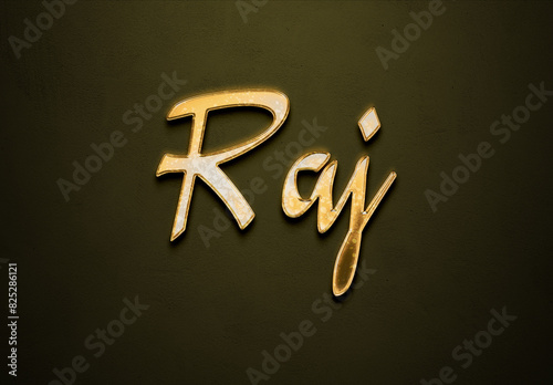 Fototapeta - Old gold text effect of Hindi name Raj with 3D glossy style Mockup.