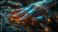 >Plakat>A hand-touching digital chatbot that provides access to information and data in online networks, robot applications and global connections, and AI, artificial intelligence, innovation, and