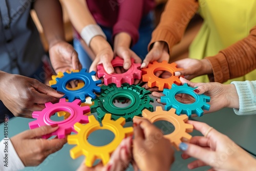 and Teamwork People Interlocking Colorful Gears for Business Success