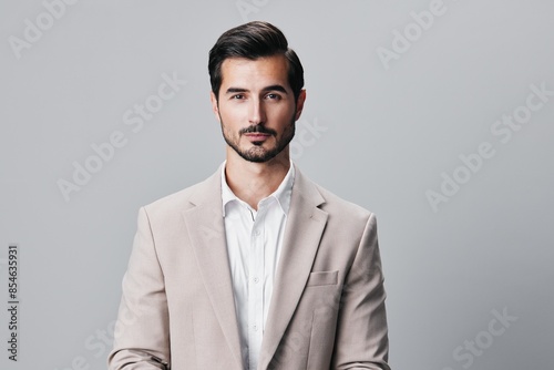 Fototapeta - happy man suit copyspace shirt smiling business beige portrait handsome businessman