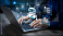 Fototapeta - Chatbot conversation assistant. Person using online customer service with chat bot to get support. Artificial intelligence and CRM software technology, customer support center, CONTACT US