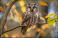 boreal owl in autumn leaves