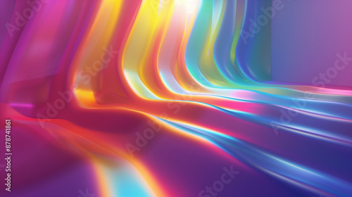 Fototapeta - Abstrakcyjne tło - nowoczesna neonowe fale z cieniem i kolorowym światłem na tle. Olejne dynamiczne smugi na tkaninie
