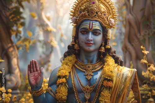 Fototapeta - A statue of young god rama standing in the garden