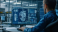 >Plakat>Over the shoulder shot of engineer working with cad software on desktop computer screen shows technical details and drawings. in the background engineering facility specialising on industrial design.