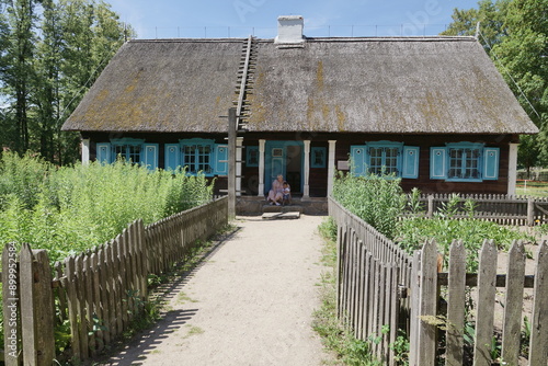 Fototapeta - Kobiety z dzieckiem przed domem.