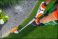 Fototapeta - Person Trimming Grass Edges With String Trimmer in a Garden on a Sunny Day