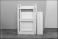 >Plakat>białe, drewniane składane krzesełko lub regał, złożone na płasko i opierające się o szarą ścianę. Obok złożonego mebla widoczna jest również jego cienka, złożona część. Ujęcie skupia się na detalu