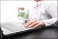 Fototapeta - Kobieta trzymająca pieniądze Euro przed laptopem