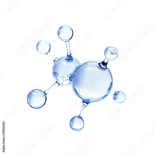3D of a transparent molecule structure, blue spheres connected by rods, representing scientific research and chemistry concepts.