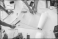 Team of architects people in group on construciton site check documents and business workflow upper view
