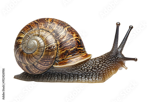 Fototapeta - Close-up of a colorful snail showcasing its shell and body, perfect for nature and wildlife enthusiasts.