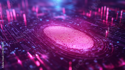 Fototapeta - Cyfrowy skaner odcisków palców skanuje biometryczne dane w celu zabezpieczenia dostępu i ochrony informacji.