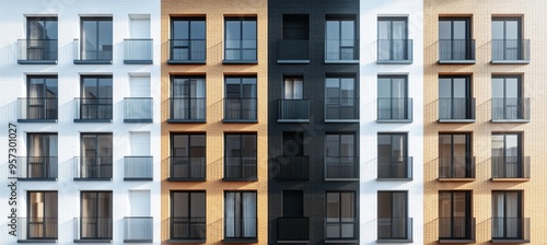 Modern apartment building facade with balconies and windows in a city, architectural detail