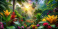 Fototapeta - Vibrant tropical forest with colorful flowers perfect for creating a paradise background, tropical, forest, vibrant, flowers