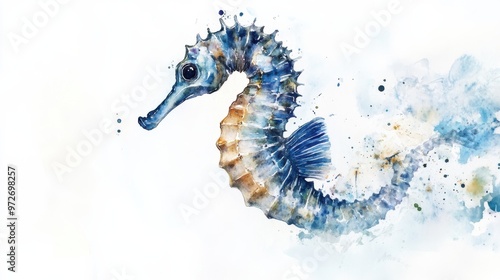 A vibrant watercolor depiction of a seahorse swimming gracefully through the ocean currents in a bright and artistic style