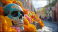 >Plakat>Meksykańskie ulice zamieniają się w prawdziwą galerię sztuki z okazji Dnia Zmarłych. Wspaniałe dekoracje w formie kolorowych kwiatów, świec i tradycyjnych czaszek wypełniają przestrzeń.