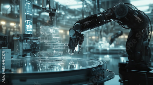 Fototapeta - W nowoczesnej fabryce, zainspirowanej ideą Przemysłu 4.0, innowacje technologiczne odgrywają kluczową rolę w codziennej produkcji.